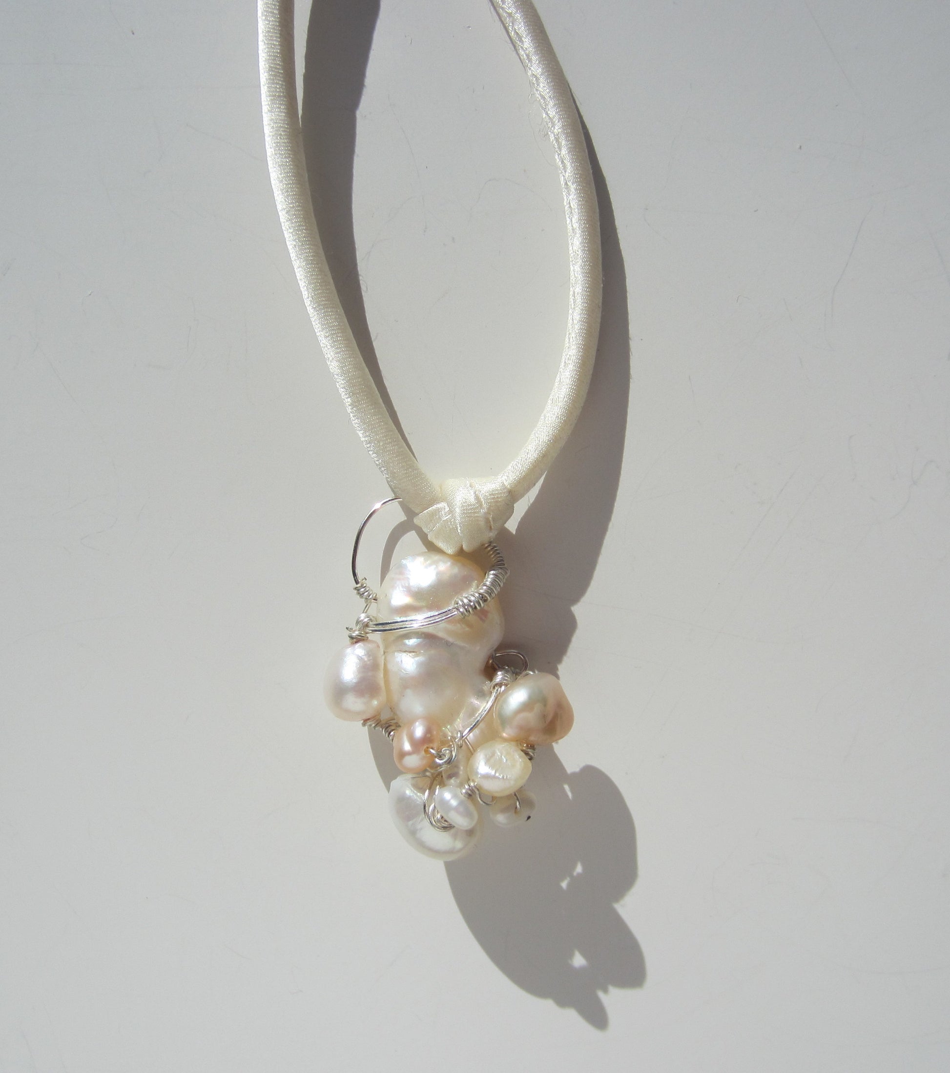 wire wrapped pearl on silk cord