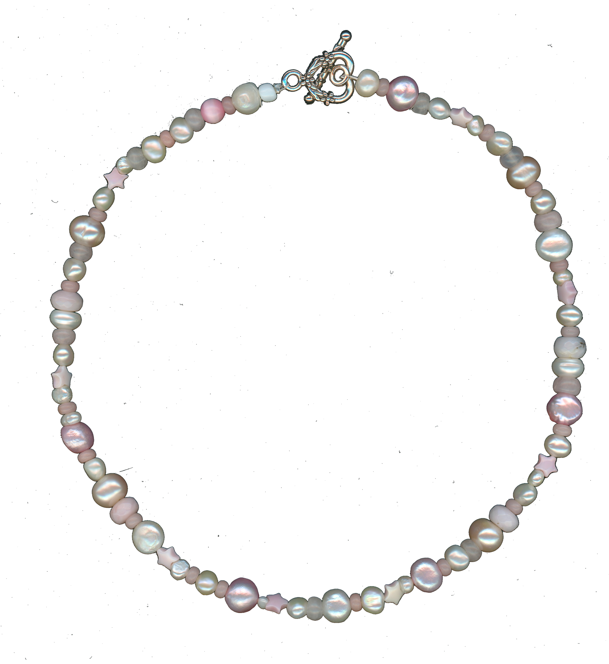 fresh water pearl, rose quartz , pink opal, conch shell stars , pink jade